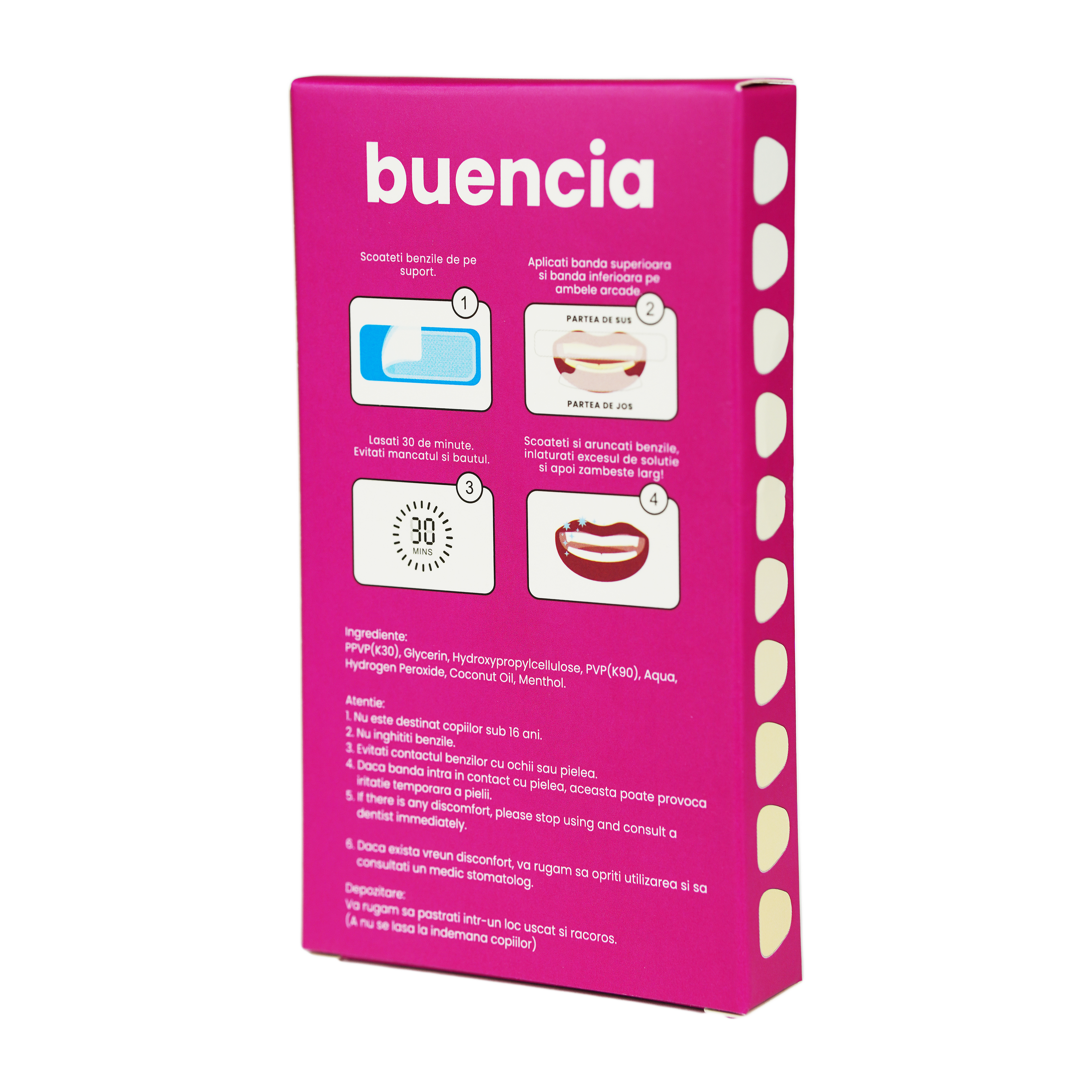 Οι ταινίες λεύκανσης περιέχουν ένα λεπτό στρώμα ενεργού τζελ, το οποίο εφαρμόζεται απευθείας στα δόντια και μένει σταθερό χάρη στην τεχνολογία Advanced Seal. Αυτό εξασφαλίζει ότι οι ταινίες παραμένουν άνετες και σταθερές στα δόντια καθ’ όλη τη διάρκεια της εφαρμογής. Χρησιμοποιώντας μία ταινία την ημέρα για 30 λεπτά, θα παρατηρήσετε επαγγελματικά αποτελέσματα σε μόλις 10 ημέρες. Μια πλήρης θεραπεία 14 ημερών μπορεί να προσφέρει λεύκανση που διαρκεί έως και 18 μήνες.